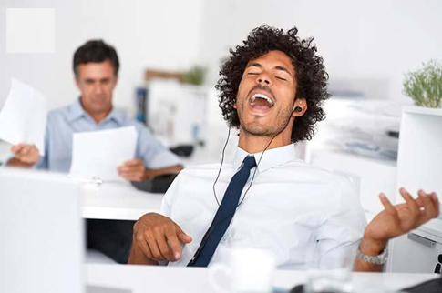 Denimo, da kot vodja pogledate v pisarno zaposlenega in opazite, da ima na glavi slušalke. Med tem ko tipka na računalnik, z glavo nakazuje ritem, ki ga očitno zaznava v slušalkah. Kako postopati? Prepovedati tako vedenje? Ali ga morda celo spodbuditi in pohvaliti?