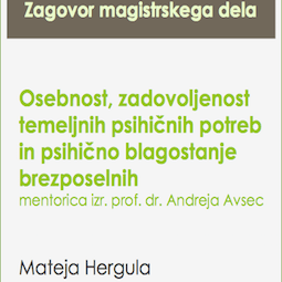 Pri večini ljudi brezposelnost povzroča stres, ki nadaljnje povzroči nižje psihično blagostanje, in sicer preko zmanjšanja temeljnih psihičnih potreb. O osebnosti, zadovoljenosti temeljnih psihičnih potreb in psihičnem blagostanju brezposelnih je pisala Mateja Hergula v svoji magistrski nalogi. O psihičnem blagostanju in o tem, kakšne so funkcije zaposlitve ter temeljne psihične potrebe, si lahko preberete v zagovoru magistrske naloge.