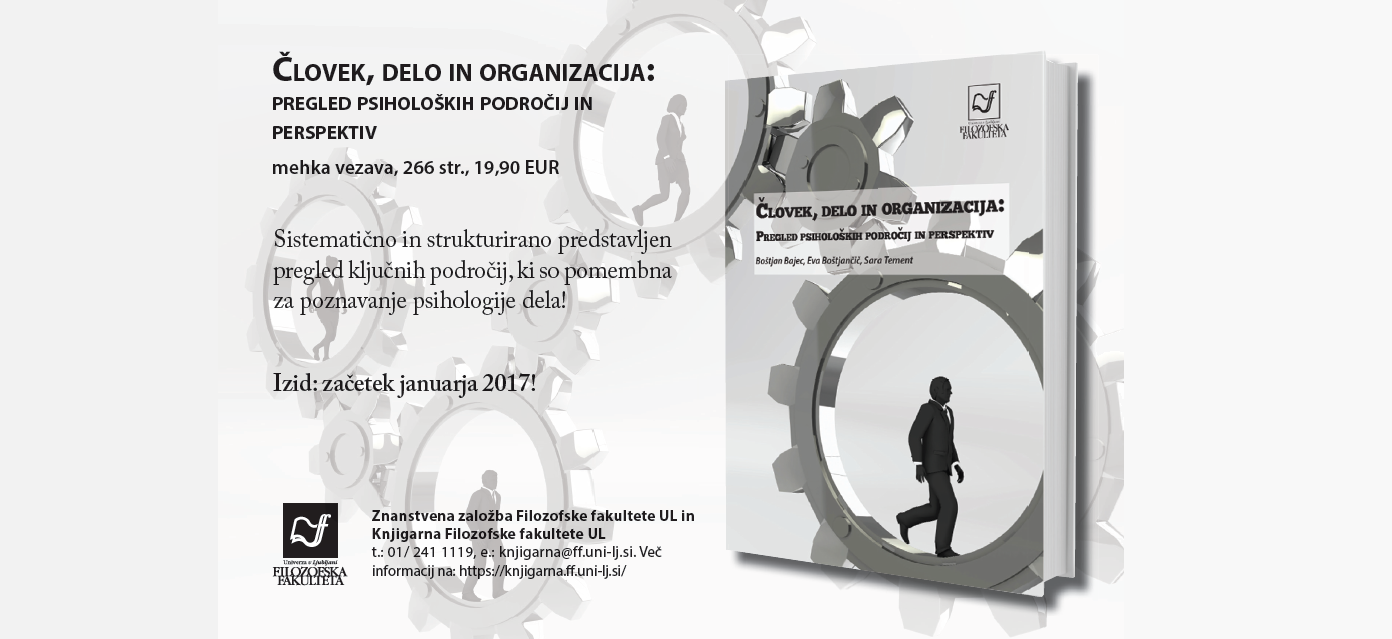 Avtorji Boštjan Bajec, Eva Boštjančič in Sara Tement v monografiji prepletajo teorijo s prakso – bralec lahko v vsakem izmed devetih poglavij sledi sistematičnemu pregledu, od pomembnih zgodovinskih mejnikov nastanka in razvoja psihologije dela do pregleda motivacijskih teorij, teorij vodenja pa vse do procesov iskanja in izbora kadrov, ocenjevanja uspešnosti ter mejnih in hkrati komplementarnih področij, ki si s psihologijo dela v teoriji in praksi delijo osnovne pojme, pristope, metode.