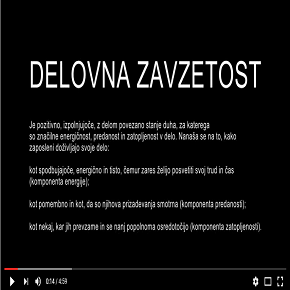 V filmu predstavljajo delovno zavzetost, ki je izpolnjujoče, z delom povezano stanje duha, za katerega so značilne energičnost, predanost in zatopljenost v delo. Zavzeti zaposleni imajo visoko zaupanje v lastno učinkovitost, se bolj trudijo in delo opravijo bolj kakovostno. K sami zavzetosti zaposlenega veliko pripomore tudi nadrejeni s sprotnimi povratnimi informacijami in reševanjem problemov ter poslušanjem predlogov.