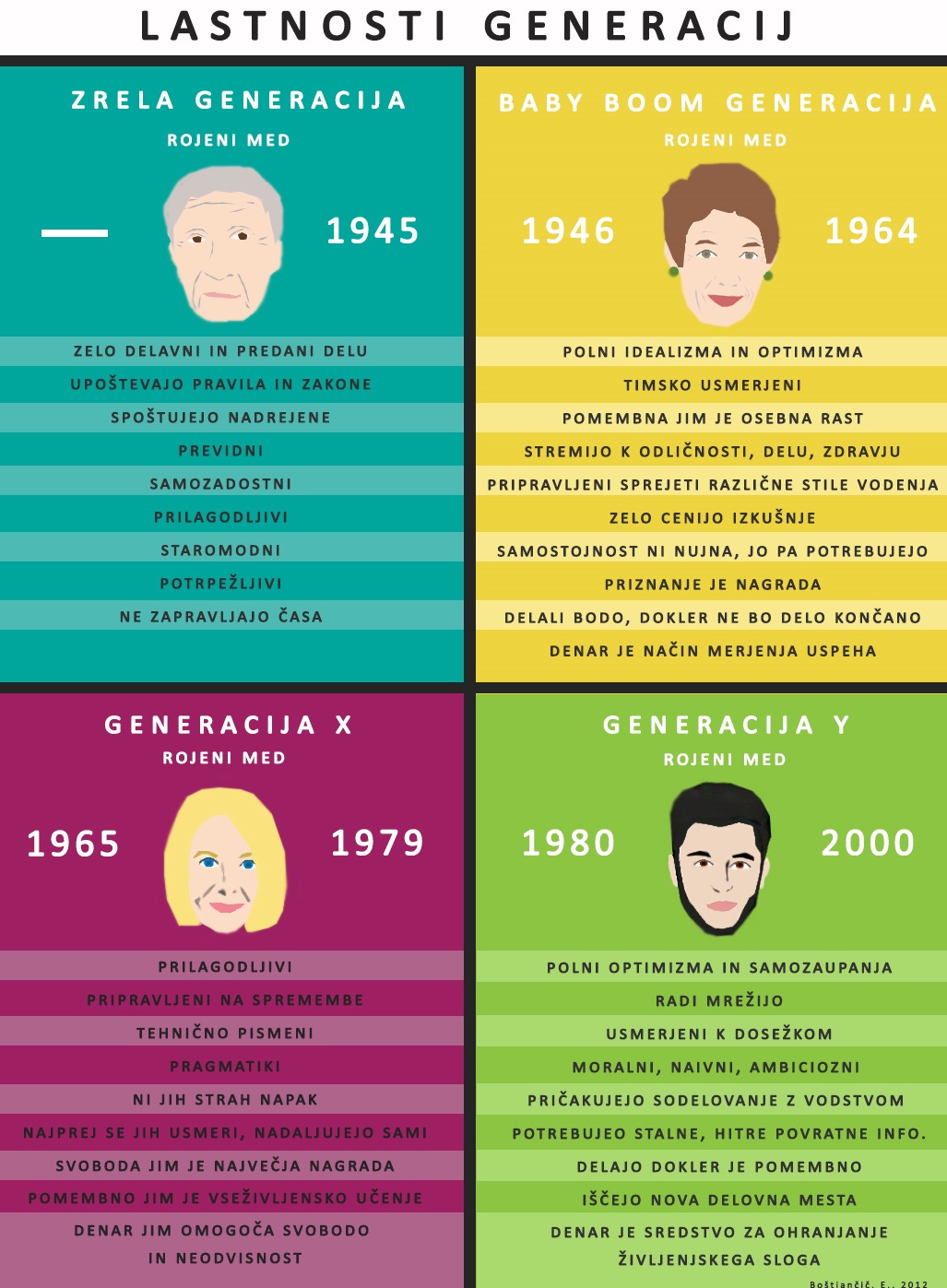 Med generacijami lahko zaradi njihovih razlik pride do številnih nesporazumov, še posebej na delovnem mestu. Za boljše razumevanje lastnosti posameznih generacij ter preprečevanje morebitnih nesoglasij si zato oglejte spodnjo infografiko, ki na jasen in zanimiv način prikazuje omenjene razlike. Več o tem pa preberite tudi v članku.