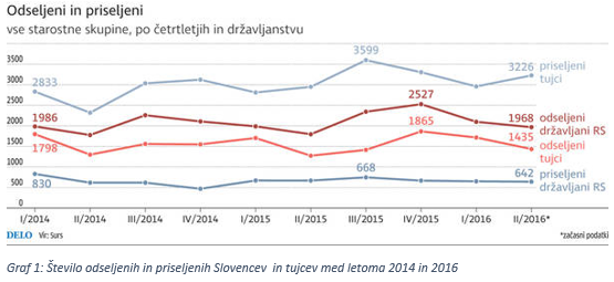 Iz grafa je razvidno, da je število priseljenih državljanov RS bilo skozi leta dokaj stabilno, enega izmed vrhov pa je doseglo v tretji četrtini leta 2015. V istem času je bilo najvišje tudi število priseljenih tujcev. Število odseljenih državljanov RS in odseljenih tujcev je bilo najvišje proti koncu leta 2015 nato pa je nekoliko upadlo.