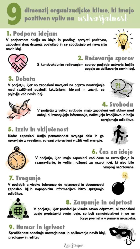 Danes organizacije vse bolj med seboj tekmujejo in iščejo načine, kako prehiteti ena drugo. Eden izmed načinov je skozi ustvarjalnost. Skozi ustvarjalnost lahko organizacije izboljšajo svoje izdelke in storitve, ki jih nudijo, ter tako za trenutek prehitijo svojo konkurenco. Seveda pa ni dovolj, da rečemo našim zaposlenim »Bodite ustvarjalni!« in pričakovati, da ustvarjalni bodo. Zavedati se moramo, kaj na ustvarjalnost vpliva, kaj jo zavira, predvsem pa moramo zelo dobro poznati našo organizacijo in zaposlene, da vemo kam lahko našo organizacijo peljemo, in kaj bo v njej delovalo.