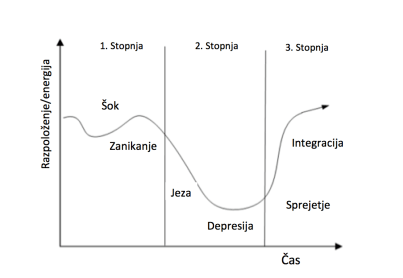 Slika 1. Prilagajanje na spremembe po Elizabeth Kubler Ross (Povzeto po Novak, 2012).