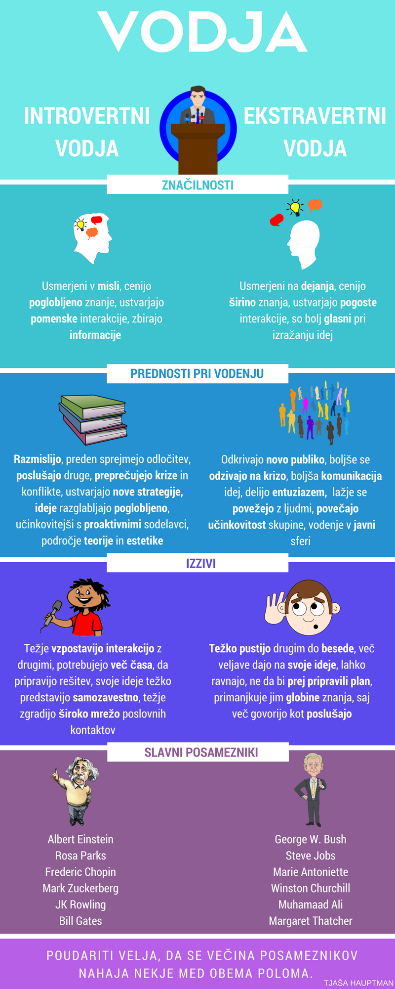 Spodnji infografiki predstavljata primerjavo med introvertnimi in ekstravertnimi vodjami in pomen emocionalne inteligentnosti za delovno mesto vodje.