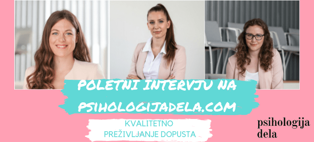 Nina: Dopust bi imenovala »kvaliteten« takrat, ko oseba zares počne aktivnosti, ki jo sprostijo in si tako napolni baterije. Pomemben se mi zdi tudi odklop od službenih aktivnosti. Veliko ljudi je v času dopustov še zmeraj dosegljivih in delajo na daljavo. Sama bi vsem priporočala, da se poskusijo vsaj kak dan med dopustom povsem odklopiti od tehnoloških naprav, ki nas nenehno spremljajo (telefon, prenosni računalnik, tablice). Tako si lahko »prevetrimo« glavo in se ob vrnitvi s svežim zagonom lotimo službenih aktivnosti.