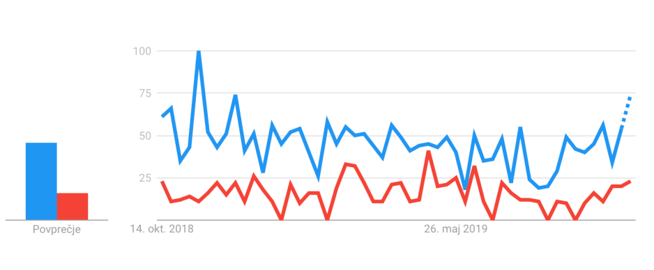 Vodenje je proces, ki od posameznika zahteva spretnosti, znanja, veliko izkušenj in tudi primerne osebnostne lastnosti. Vodenja se lahko naučimo ali pa tudi ne. Od vodje se pričakuje marsikaj, a hkrati je vodja na vrhu sam. Kratka raziskava na Google Trendi je pokazala, da Slovenci veliko pogosteje iščemo besedo vodenje (modra črta) kot čustva (rdeča črta). Je torej vodenje bolj popularno ali imajo ljudje več težav z njim kot s čustvi? Zanimivo vprašanje.