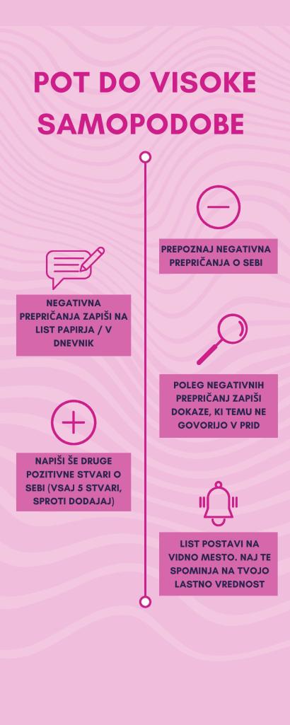 Samopodoba je nekaj, kar imamo vsi, in izredno močno vpliva na naše vedenje, česar se velikokrat komajda zavedamo. Žal pa je preveč pomembna, da bi bilo tako! Lahko smo zelo pridni, delavni, dobimo super službo, a nas bo na koncu povozilo to, da nismo prepričani sami vase. Škoda, ne? Čas je, da se začnemo spoznavati, odkrivati, in svojo osebnost z vsemi svojimi značilnostmi izkoriščati sebi v prid – dobra samopodoba nam lahko le pomaga.
