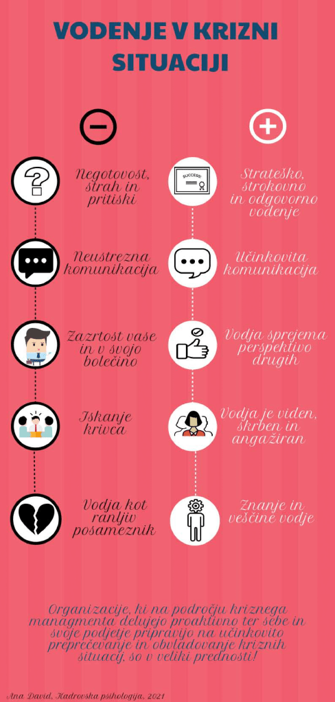 Vloga vodje je nepogrešljiva pri soočanju moštva ali celotne organizacije s krizno situacijo. Na katere lastnosti dobrega vodje ne smemo pozabiti ob nastopih kriz? Katere spretnosti je potrebno negovati za ustrezno pripravo, ki bo omogočila učinkovito preprečevanje in obvladovanje kriznih situacij?
