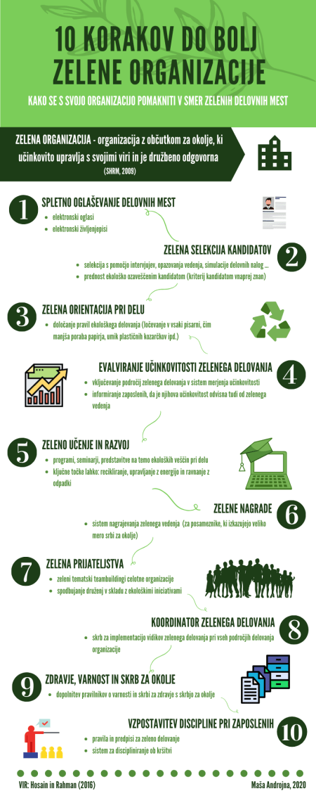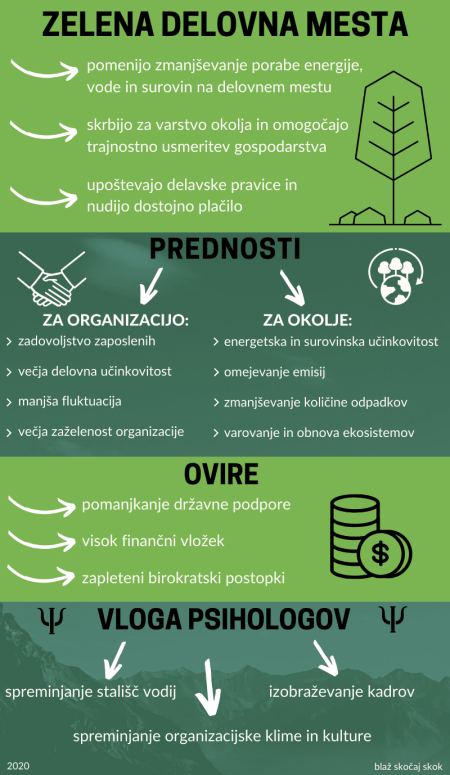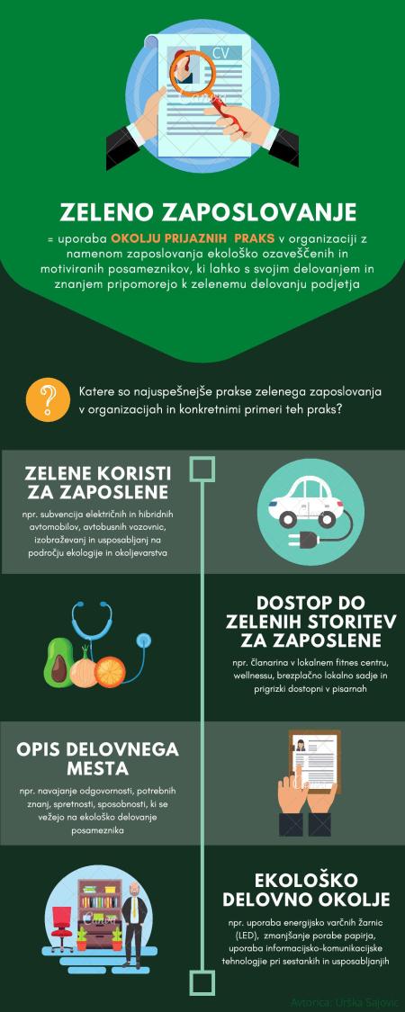 Zaradi vse bolj razsežne degradacije naravnega okolja se tudi trg dela počasi, a zanesljivo, usmerja v nove, zelene poklice. Infografika prikazuje prednosti zelenih delovnih mest za organizacijo in okolje ter opozarja na ovire, ki nastajajo v procesu ozelenjevanja delovnih mest. Naslovljene so tudi…